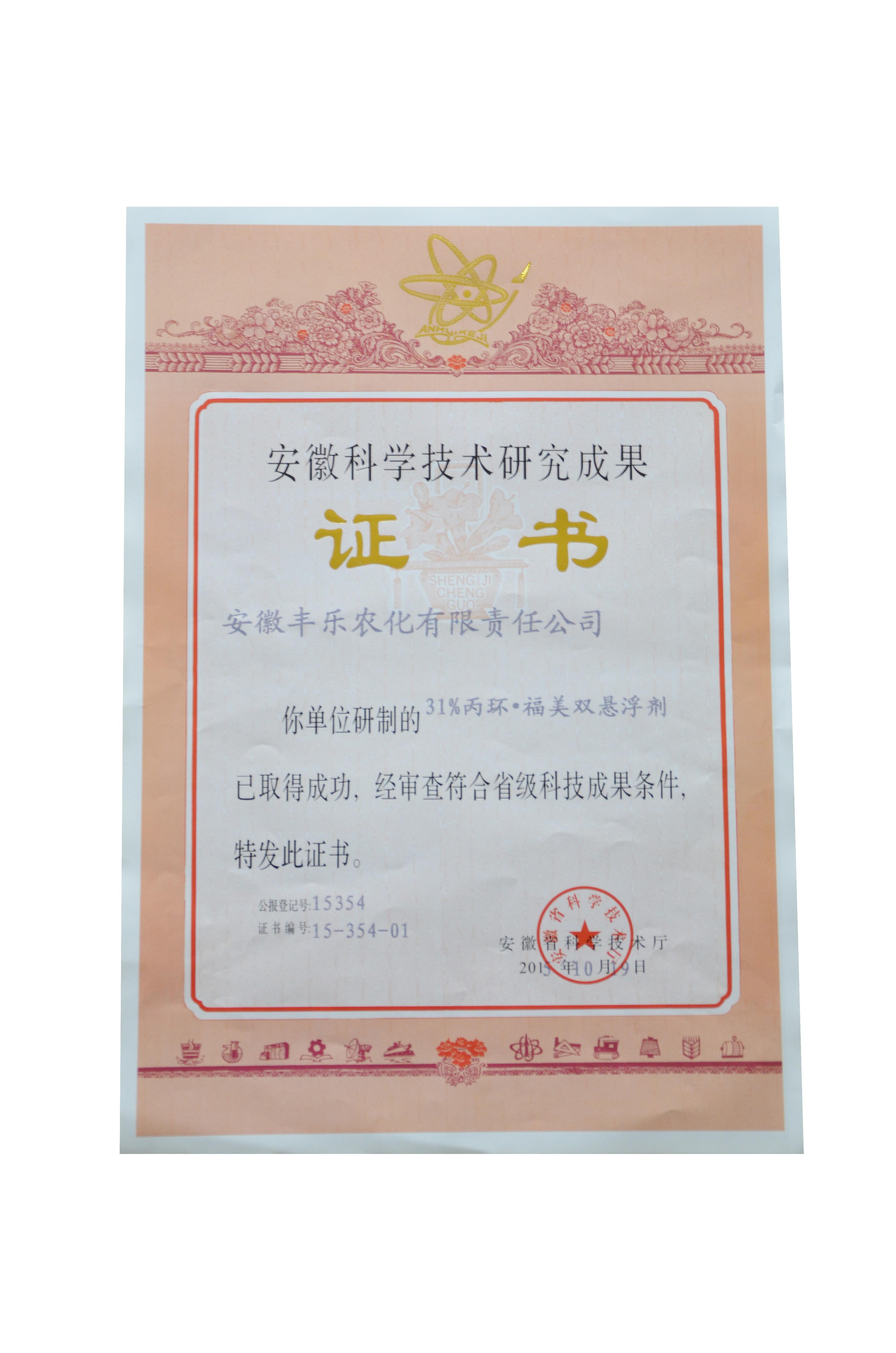 安徽省新产品-31%丙环唑·福美双悬乳剂(证书)